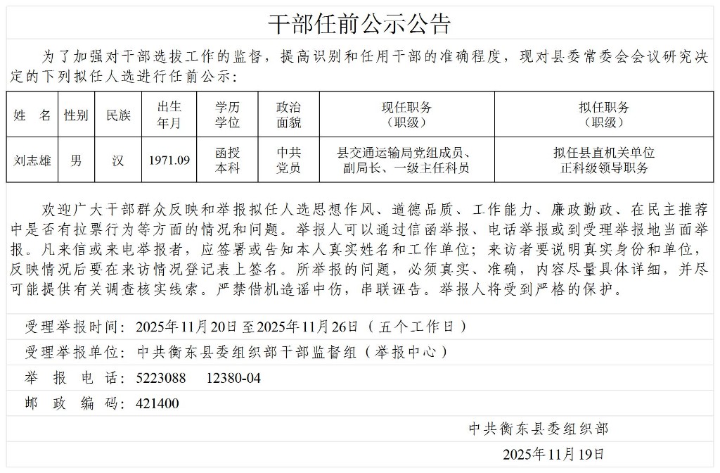 文章來源:中共衡東縣委組織部 時間:2025-11-19 17:25:00