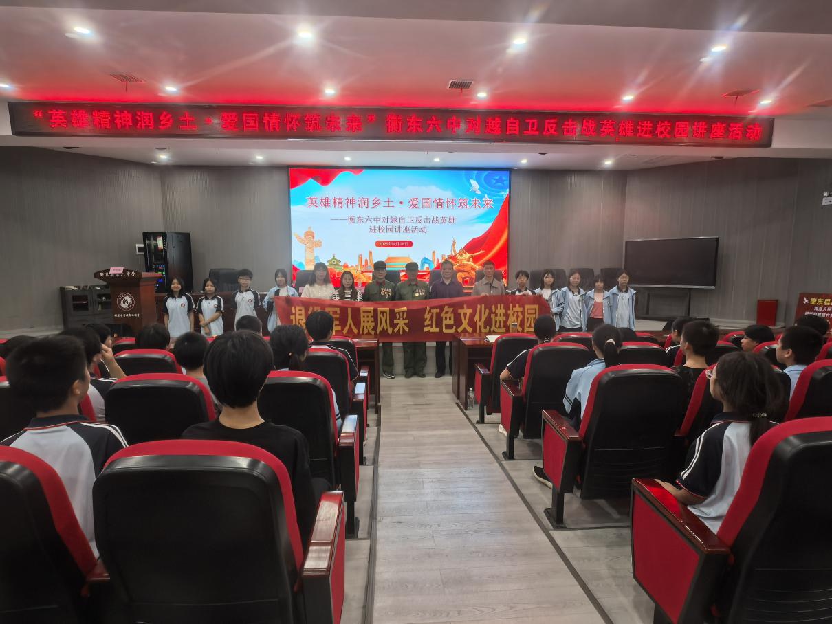 9月份,衡東縣組織榮立二等戰功、六級戰殘等親歷邊境戰爭的戰斗英雄走進縣第一、第六、第九中學,為6000余名師生開展愛國主義教育和國防教育巡回宣講。