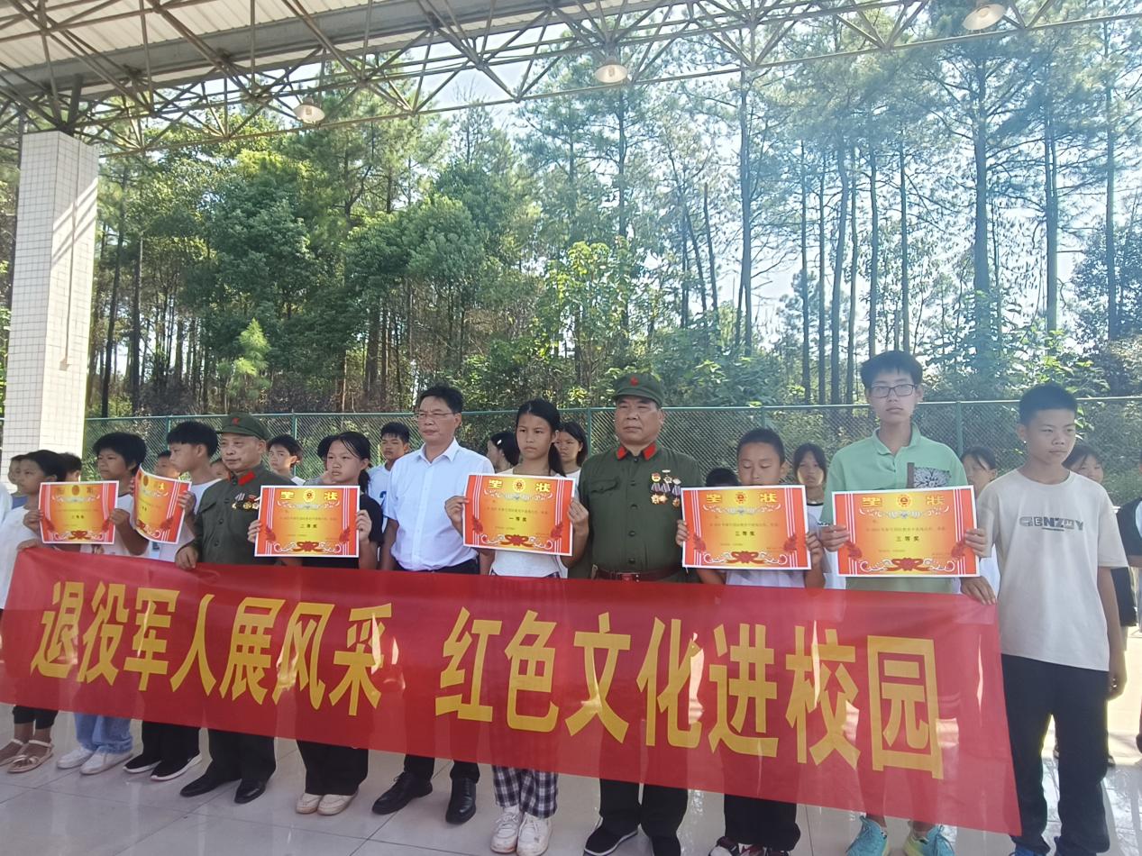 宣講團成員為衡東縣第九中學軍訓先進班級頒獎